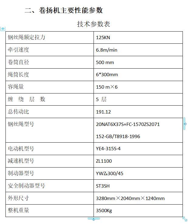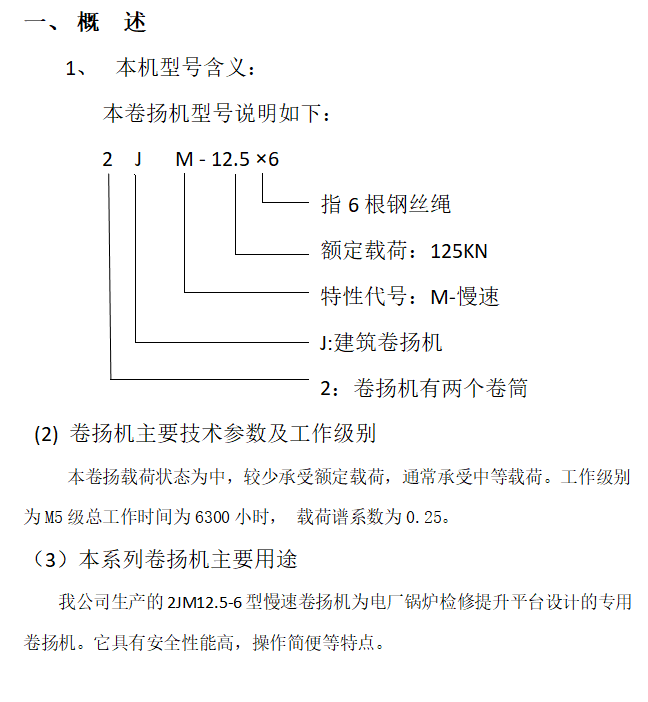 (1)本機由機座、減速器、彈性聯軸器、電動機、制動器、安全制動器、卷筒總成及電氣等組成。整機結構緊湊,工藝合理。電動機經聯軸器通過減速器帶動卷筒運轉。同時可通過控制電動機的正反轉達到收放鋼絲繩的目的。卷筒運轉或停止由液壓制動器制動,制動器與電動機同步工作,切斷電源的同時即能制動卷筒,工作迅速靈敏、安全可靠。